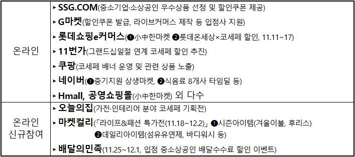 - 홈플러스: 11월 주말 특가와 간편식 할인.